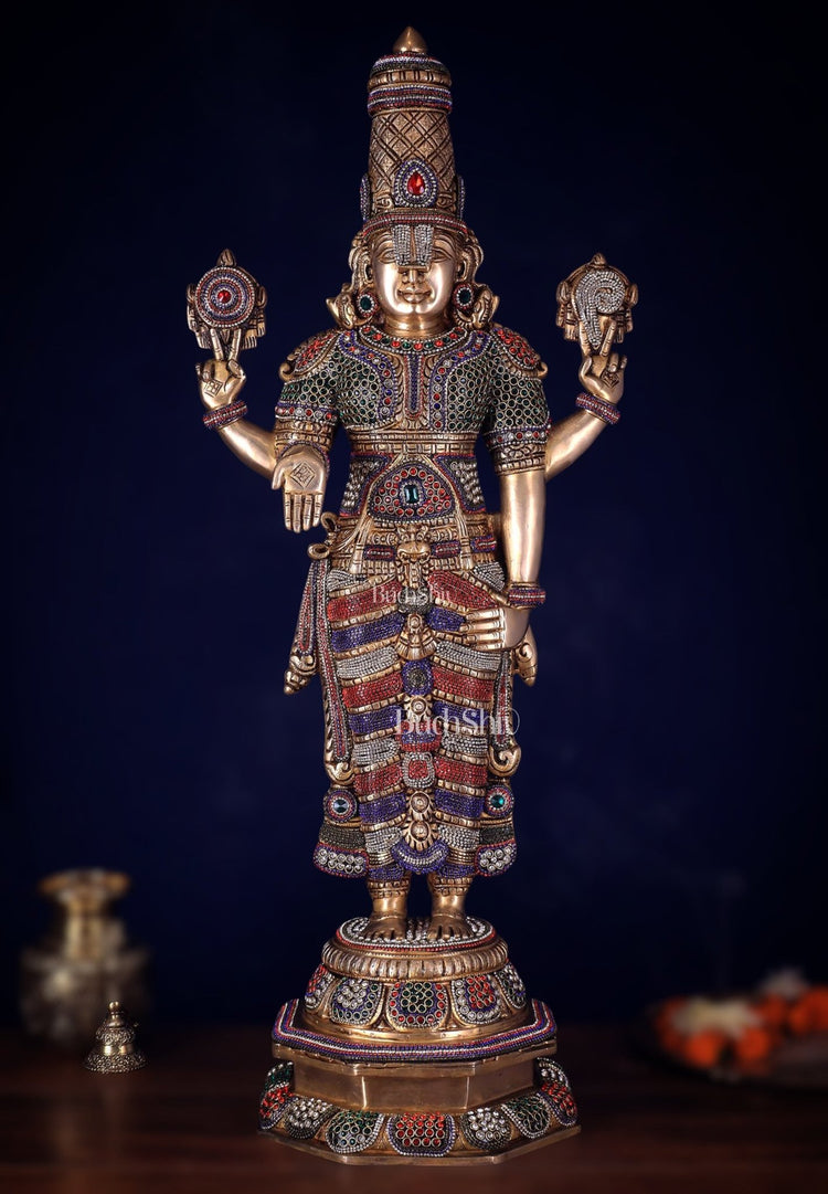 Unique Pure Brass Tirupati Balaji Idol 33" jeweled up