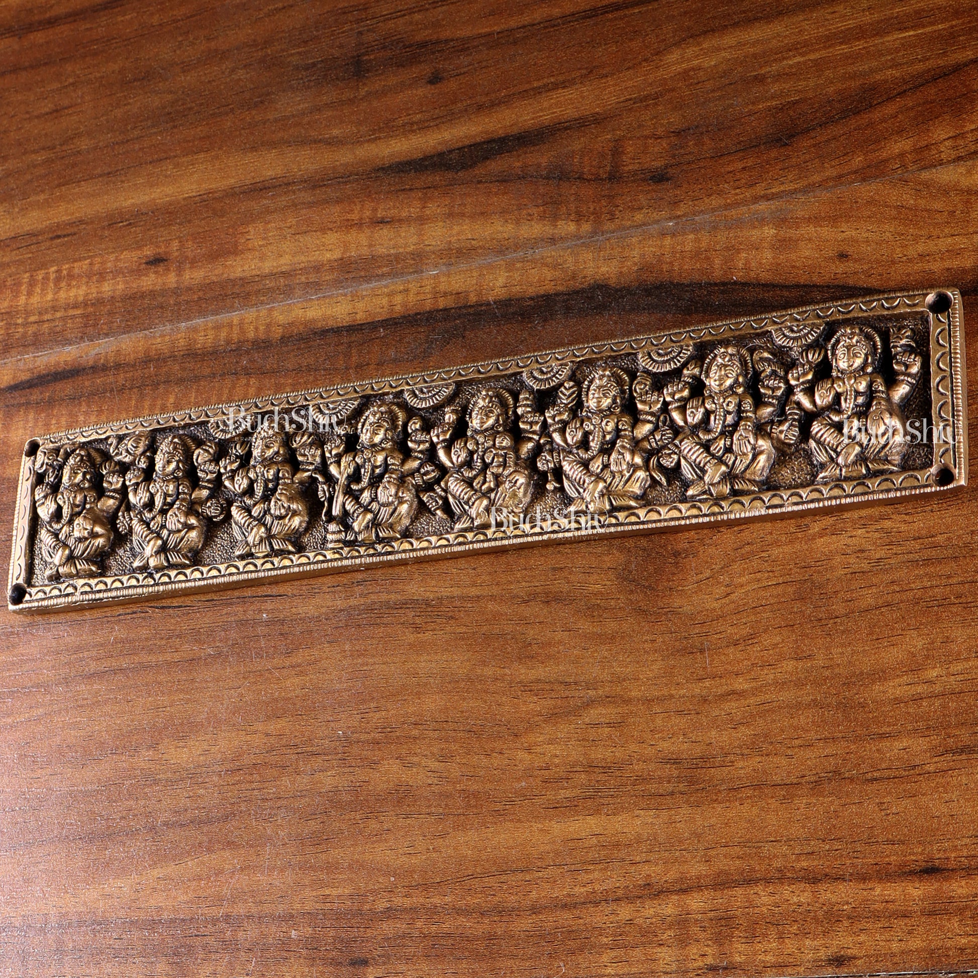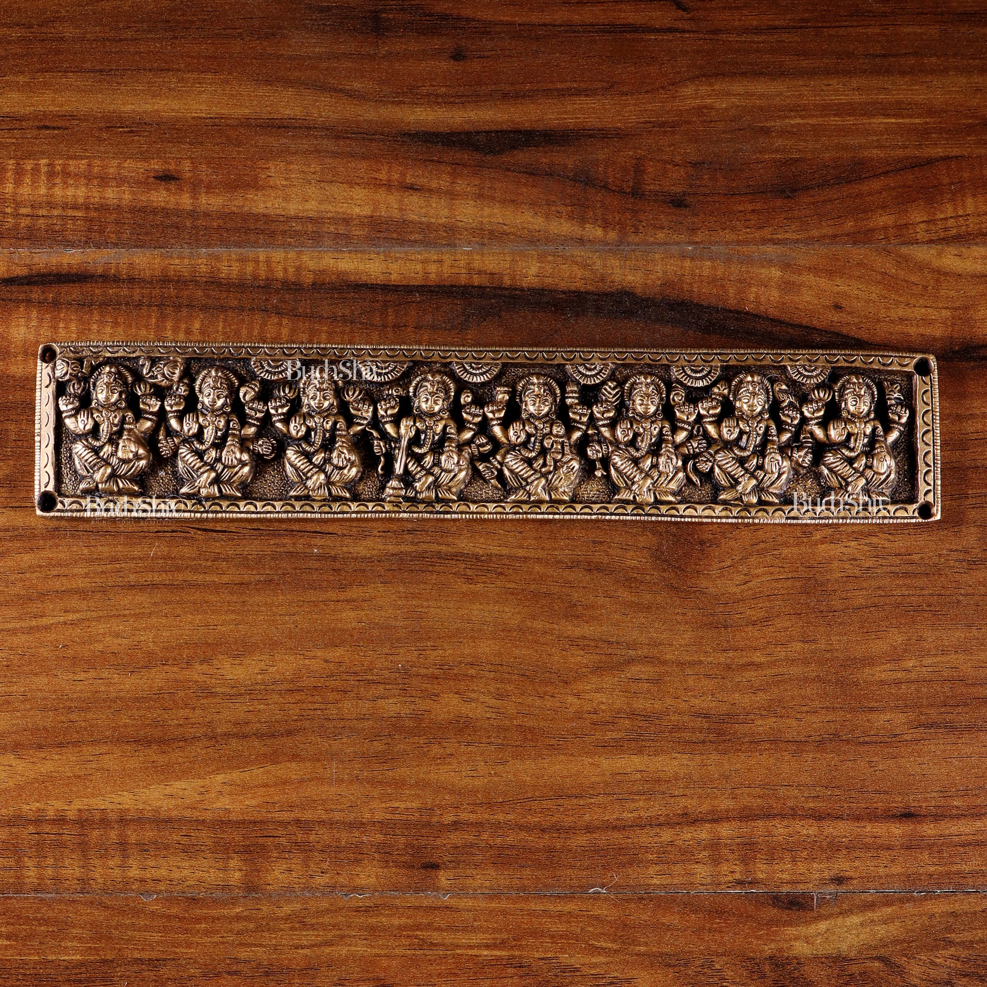 A finely crafted brass wall hanging featuring all eight forms of Goddess Lakshmi, symbolizing wealth, knowledge, strength, and prosperity.