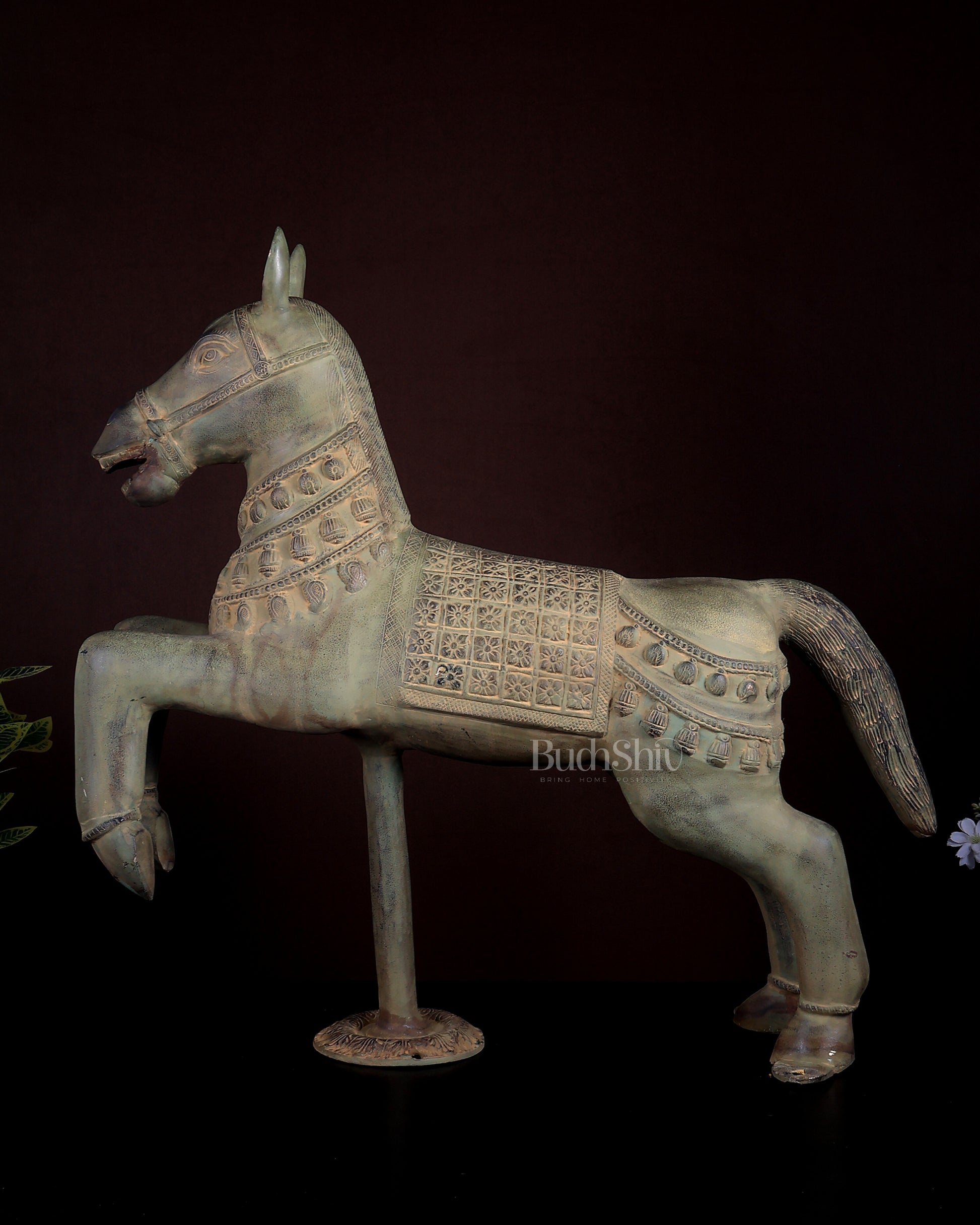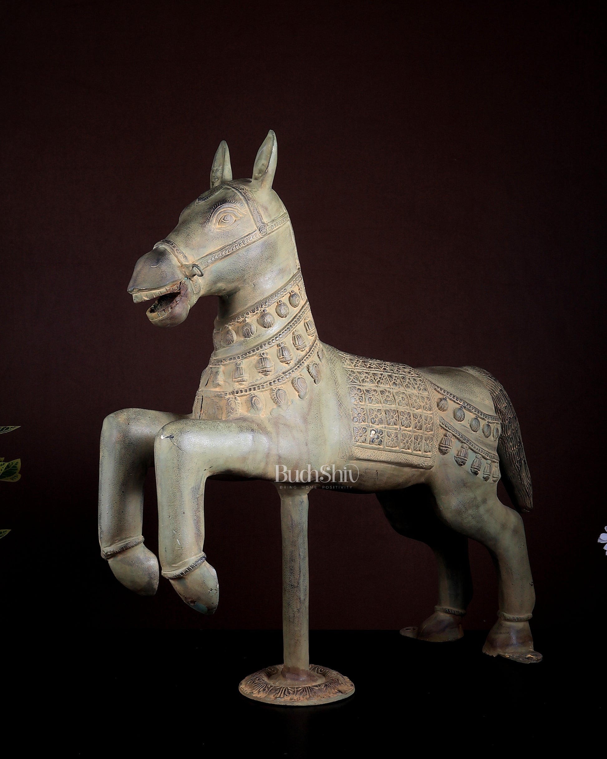 This Vintage Brass Horse Artefact is a acommanding symbol of power, movement, nobility, and prosperity, inspired by classical Indian and tribal metal art traditions. Sculpted with strong anatomical proportions and a proud stance, the horse represents strength, success, speed, and protection, making it a revered motif in both Vastu and heritage décor.