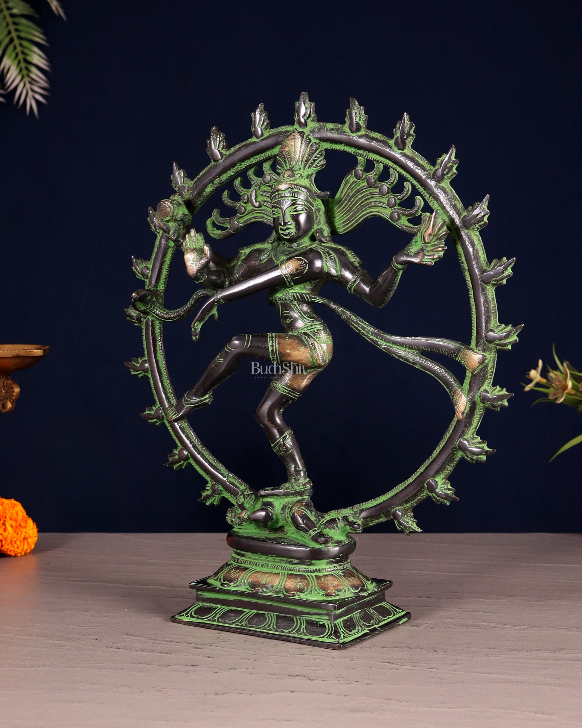 Vintage Nataraja Brass Statue – Black & Green Tone | 11.5"