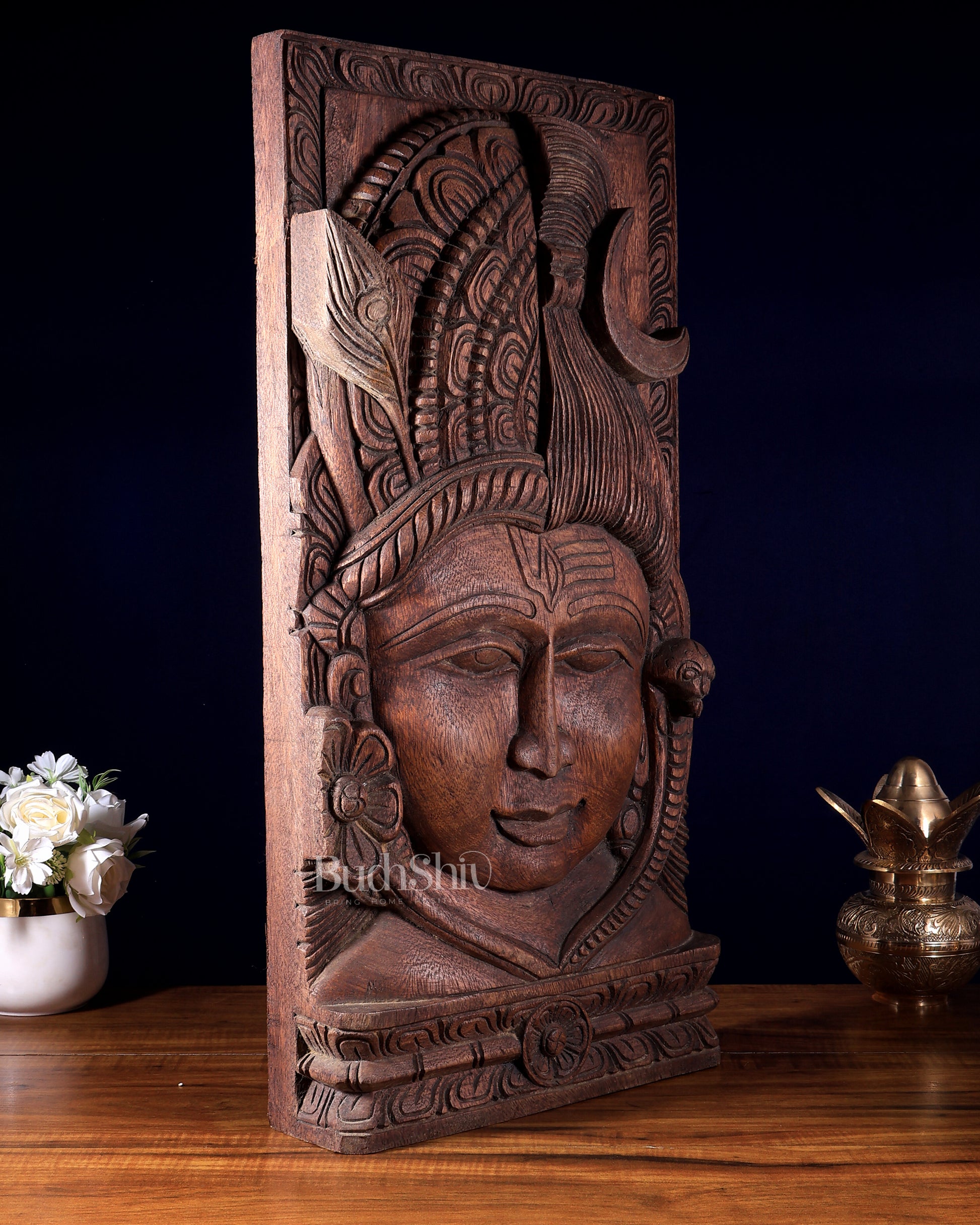Wooden Ardhanarishwara Half Shiva Half Parvati Handcrafted Wall Hanging 24 inch